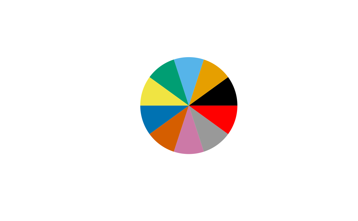 Palette names are stripped of whitespace and lowered for name matching. All RColorBrewer and Viridis palettes are included. All grDevices plotting functions are provided as palettes, simply use: colors = "rainbow", "heat", "terrain", "topo" or "cm". Viridis is recommended for (continuous) color-blind friendly paletets. Okabe-Ito is recommended for discrete distinct colors (up to 8, generate if more colors are required).