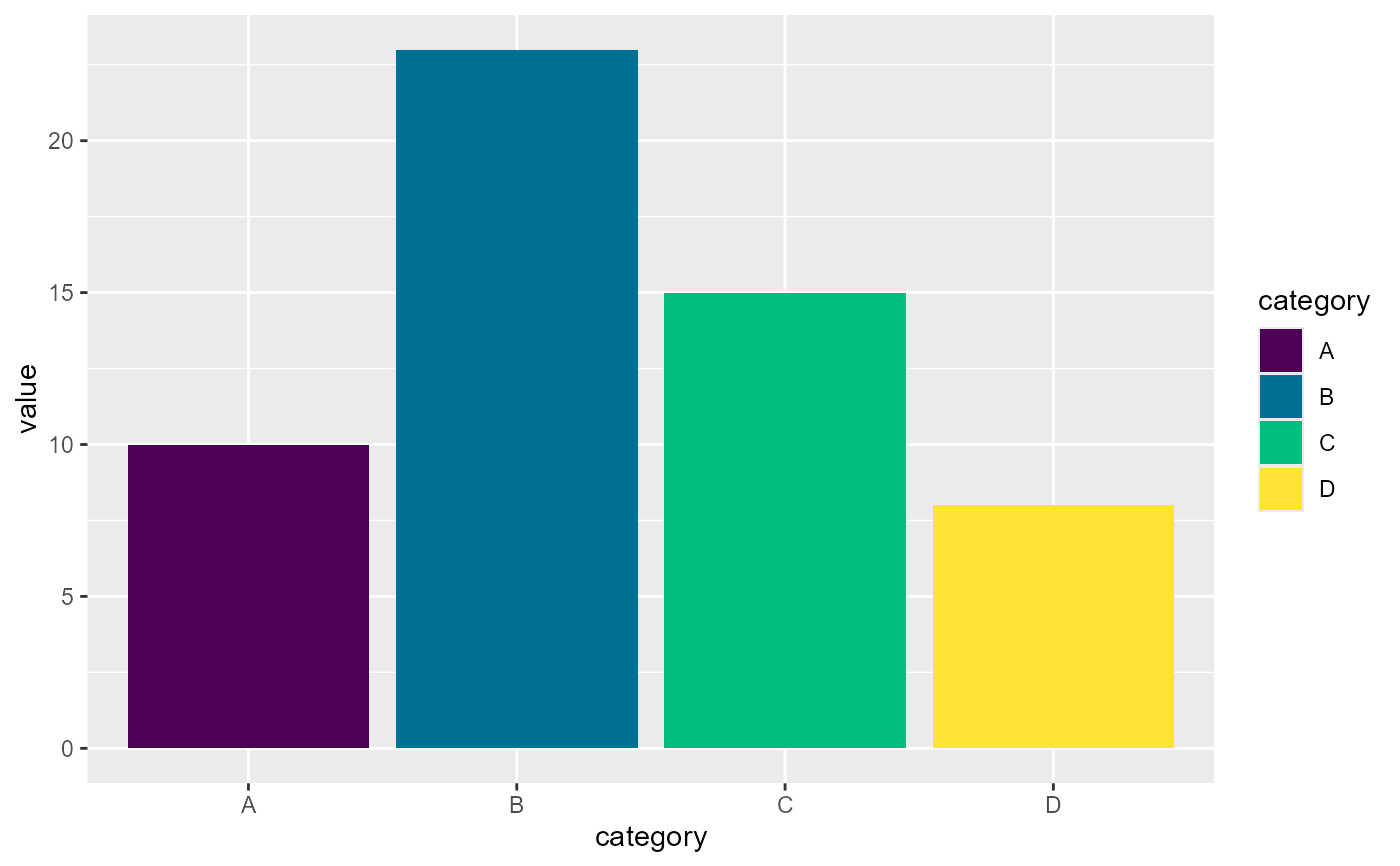 ggplot2::ggplot(df, ggplot2::aes(x = category, y = value, fill = category)) +