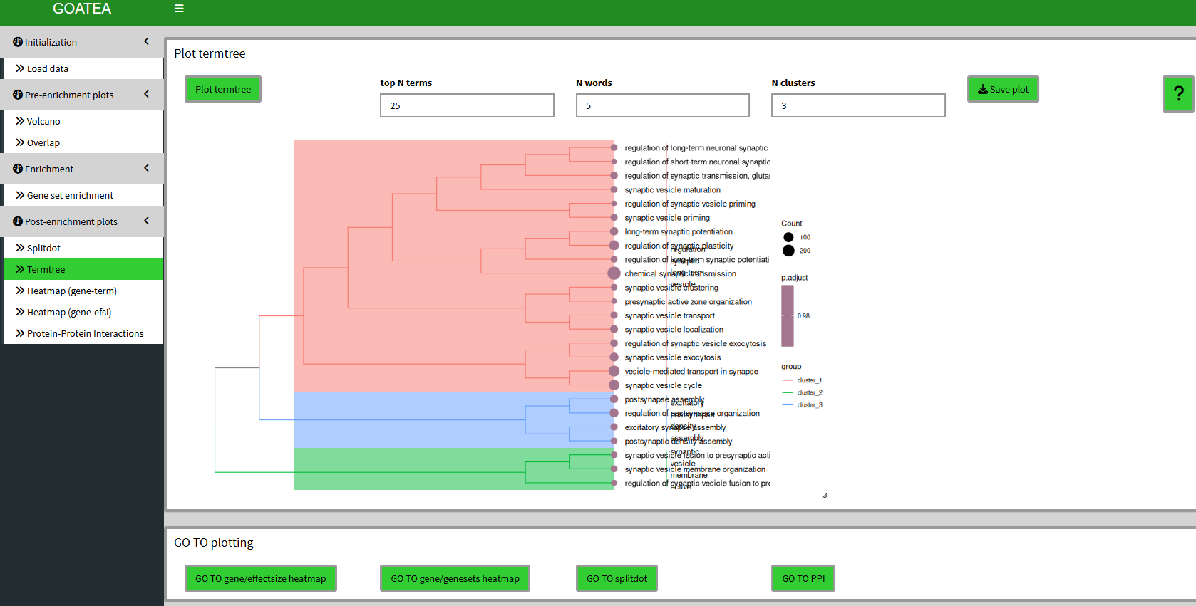 We ‘GO TO termtree’, also set ‘top N terms’ to 25 and drag the slider at the bottom right to the right to scale the plot size.